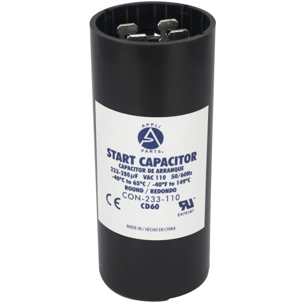 Appli Parts CON-233-110 Capacitor de Arranque 233-280 MFD (microfaradios) uF, 110-125 VAC. Universal para Motores Electricos, condensador de arranque de 3.7 cm de Diametro, 8.6 cm de Alto