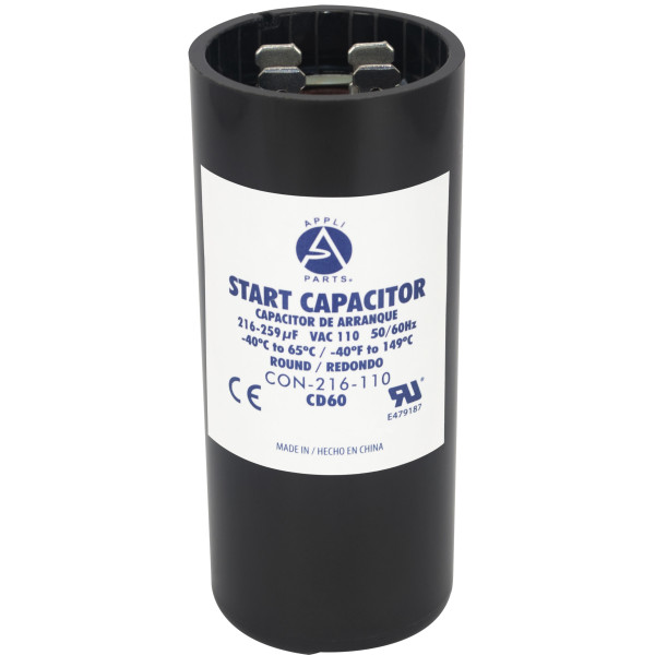 Appli Parts CON-216-110 Capacitor de Arranque 216-259 MFD (microfaradios) uF, 110-125 VAC. Universal para Motores Electricos, condensador de arranque de 3.7 cm de Diametro, 8.6 cm de Alto