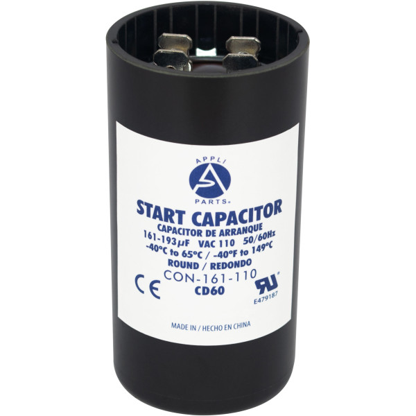 Appli Parts CON-161-110 Capacitor de Arranque 161-193 MFD (microfaradios) uF, 110-125 VAC. Universal para Motores Electricos, condensador de arranque de 3.7 cm de Diametro, 8.6 cm de Alto
