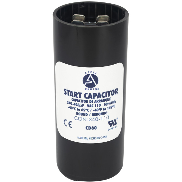 Appli Parts CON-340-110 Capacitor de Arranque 340-408 MFD (microfaradios) uF, 110-125 VAC. Universal para Motores Electricos, condensador de arranque de 3.7 cm de Diametro, 8.6 cm de Alto