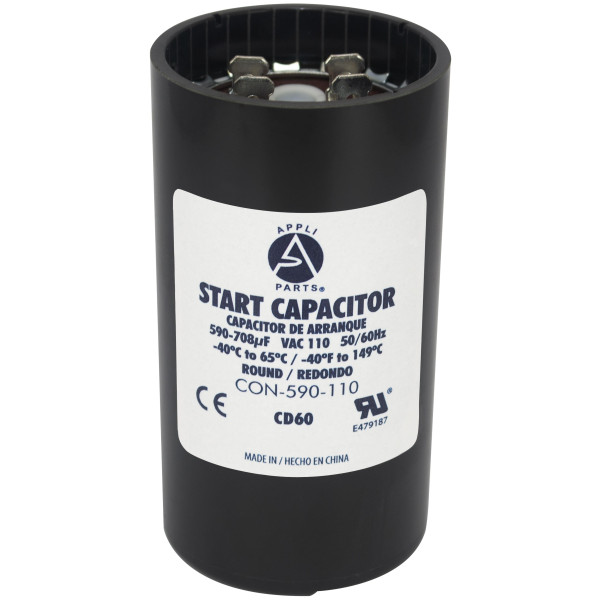 Appli Parts CON-590-110 Capacitor de Arranque 590-708 MFD (microfaradios) uF, 110-125 VAC. Universal para Motores Electricos, condensador de arranque de 4.6 cm de Diametro, 8.6 cm de Alto