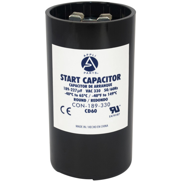 Appli Parts CON-189-330 Capacitor de Arranque 189-227 MFD (microfaradios) uF, 330 VAC. Universal para Motores Electricos, condensador de arranque de 4.6 cm de Diametro, 8.6 cm de Alto