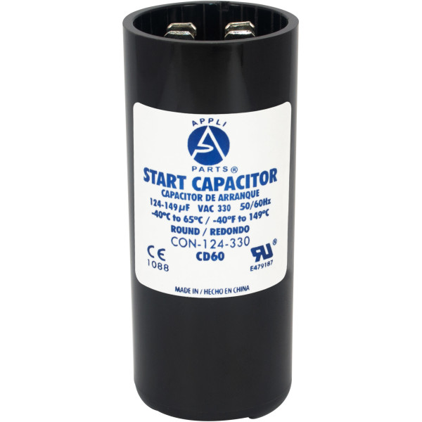 Appli Parts CON-124-330 Capacitor de Arranque 124-149 MFD (microfaradios) uF, 330 VAC. Universal para Motores Electricos, condensador de arranque de 3.7 cm de Diametro, 8.6 cm de Alto