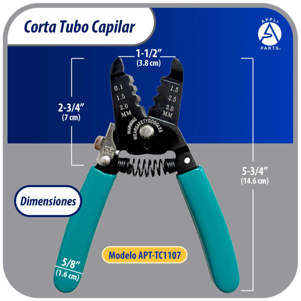Appli Parts APT-TC1107 Corta Tubo Capilar para Cobre hasta 1/8 in o 3 mm, Herramienta Profesional para HVAC y Bricolaje, compatible con metales blandos
