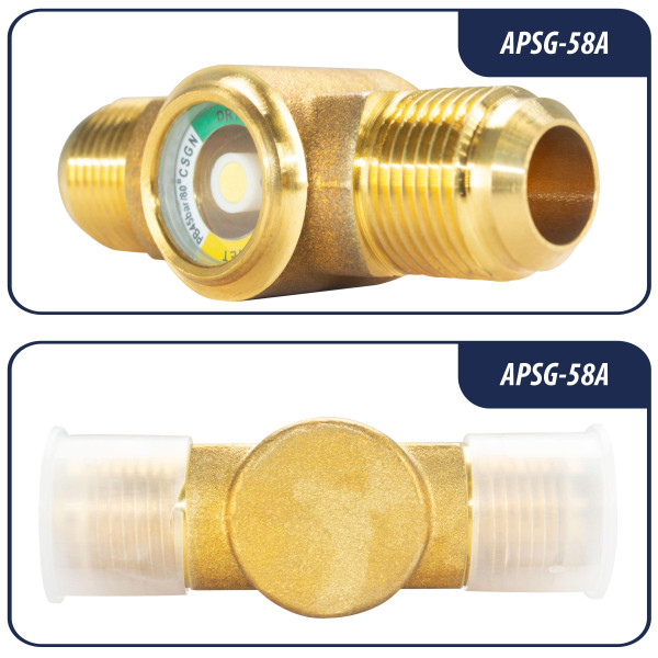 Appli Parts APSG-58A Visor de Liquido 5/8 pulg Flare e Indicador de Humedad con conexiones Rosca con cuerpo solido para Sistemas de Refrigeracion y Aire Acondicionado compatible con refrigerantes CFC, HCFC, HFC