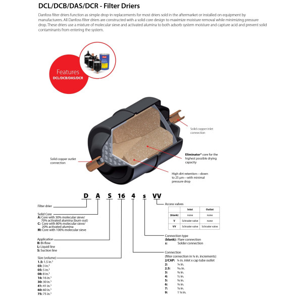 Danfoss 023Z5019 Filtro Secador 3/8pulg linea de Liquido para sistemas de aire acondicionado y refrigeracion DCL 053S Soldable 2.8-4.1tons Unidireccional 11.3cm Largo 5.8cm Ancho